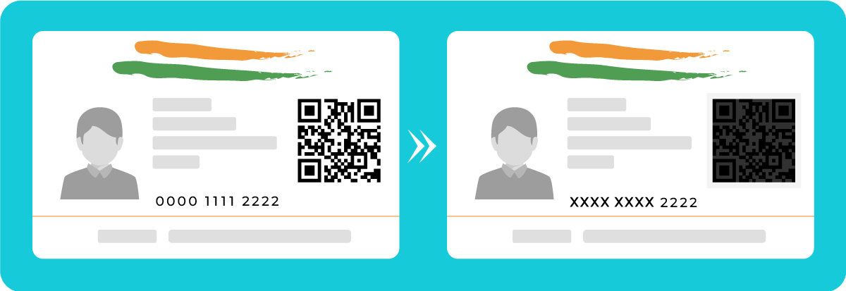 A masked Aadhaar adds an extra layer of protection on the Aadhaar card by masking the initial 8 digits of the Aadhaar number and the QR code – only keeping the last 4 digits readable. It can be shared/stored without revealing any sensitive information. A masked aadhaar reduces the user scams and can be easily used in situations where providing the Aadhaar number is not required.